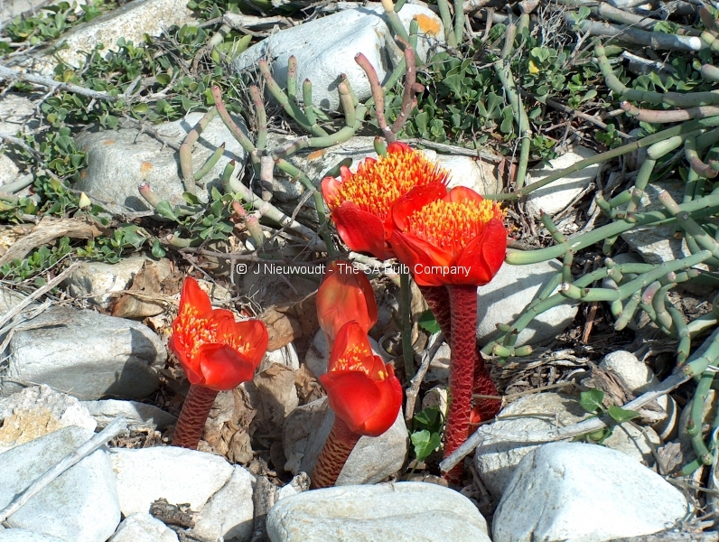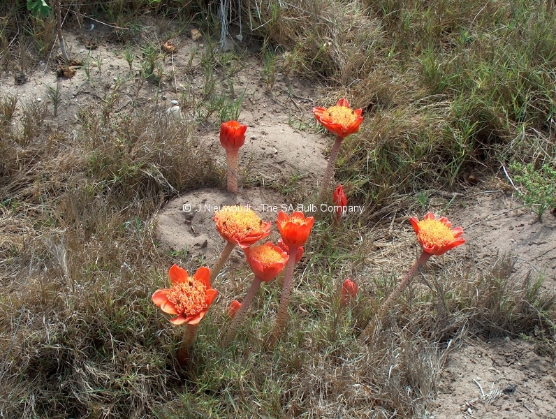 Haemanthus coccineus – they do not like to be transplanted from mid-summer through to mid-spring. They tend to rot if disturbed at any time other than late spring or early summer when they are dormant.
