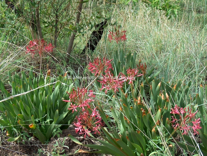 Boophone disticha – all forms of this magnificent bulb will rot if overwatered or planted in soil that retains even a little water. We have found that the transvaal form thrives if planted out into a rockery or veld garden (wild garden/meadow) when the bulb is still small ie about 2-3cm wide and left undisturbed and it only receives rain water. They do make beautiful container subjects but very special care needs to be taken with them and the pot or container should not be placed in full sun in a very hot area bearing in mind that in nature, tallish wild grasses afford them protection from the heat and their roots do not overheat as is the case in a pot on a hot patio.